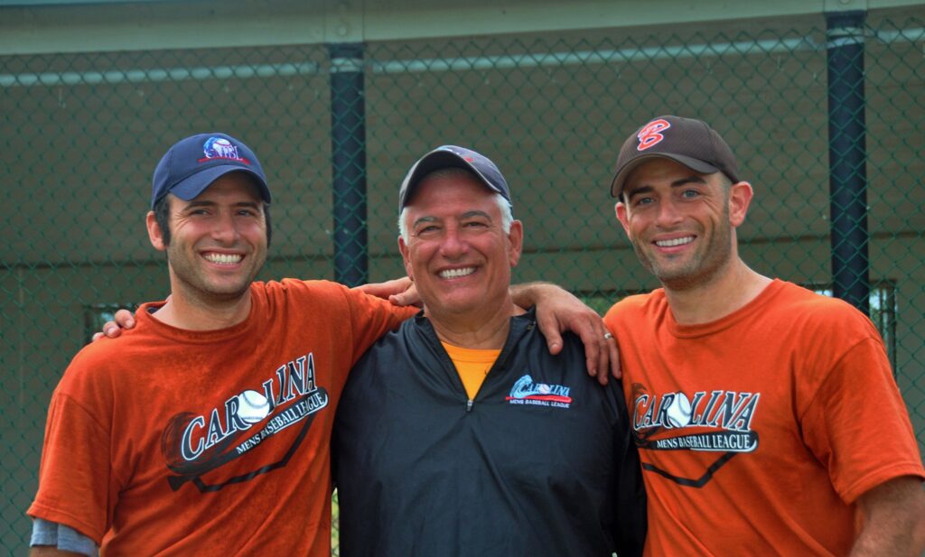 Joe Seme, Lou Howard, and Frank Amoroso shared a common bond: the love of the great game of baseball. They played together on the Wilmington Old Salts in the Roy Hobbs Senior Men’s Tournament held annually in Fort Myers, Florida. Their motto is “Forever Baseball, Forever Young,” and the three established the Carolina Men’s Baseball League for adult players to share the fun and camaraderie of baseball with those looking to experience the sounds, smells, and joy of playing America’s Pastime.