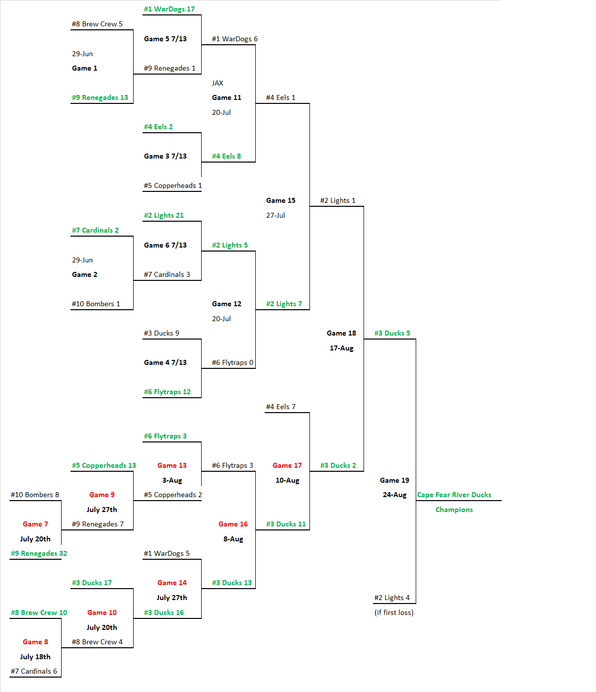 8/24 – “GAME 19”TBDTBD#2 Northern Lights4#3 River Ducks5