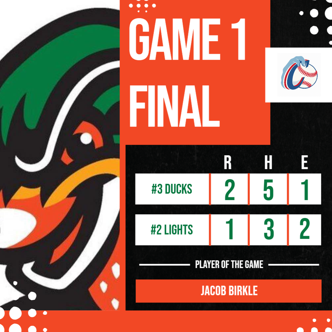 Jacob Birkle – His dominant complete game (13 strikeouts, 3 hits allowed) silenced a red-hot Northern Lights offense and gave the Ducks the chance to fight for the championship in a decisive Game Two.